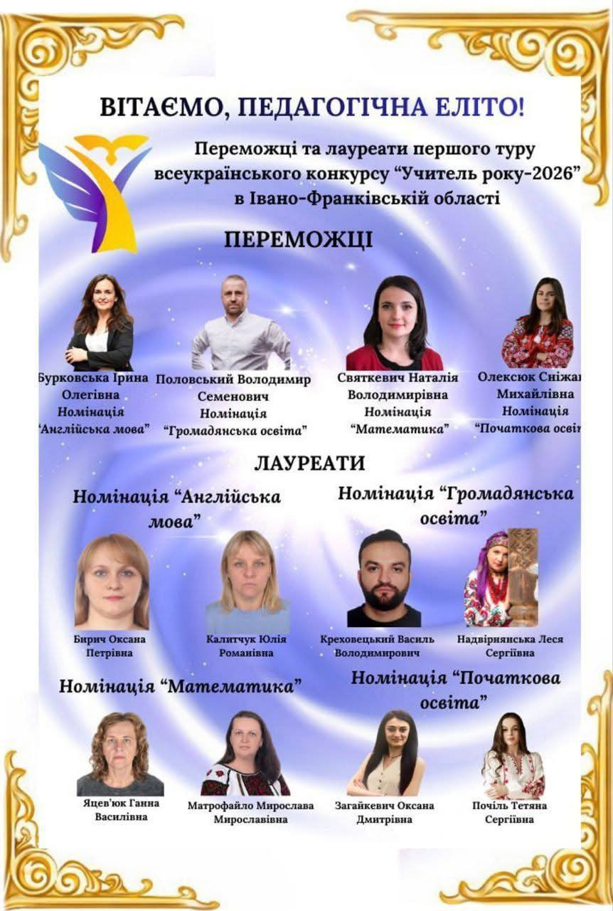 Коломийський педагогічний фаховий коледж вітає випускницю Сніжану Олексюк, вчительку початкових класів ліцею «Перша ластівка», з перемогою на обласному етапі конкурсу «Учитель року – 2026». Її досягнення відзначає високий професіоналізм, творчість і любов до дітей, а також надихає студентів і випускників коледжу на нові професійні звершення.