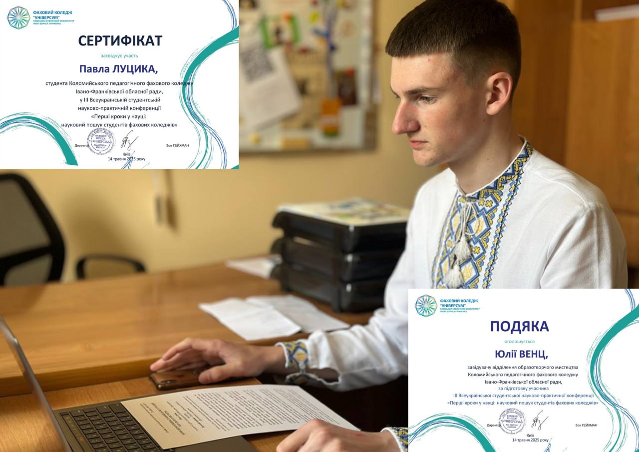 14 травня 2025 року в межах Фестивалю науки, який проходить у Київському столичному університеті імені Бориса Грінченка, у Фаховому коледжі «Універсум» відбулася ІІІ Всеукраїнська студентська науково-практична онлайн-конференція «Перші кроки у науці: науковий пошук студентів фахових коледжів». У співпраці з Павлом Луцьком, студентом 2-О курсу Коломийський педагогічний фаховий коледж Івано-Франківської обласної ради мали цікаву доповідь.