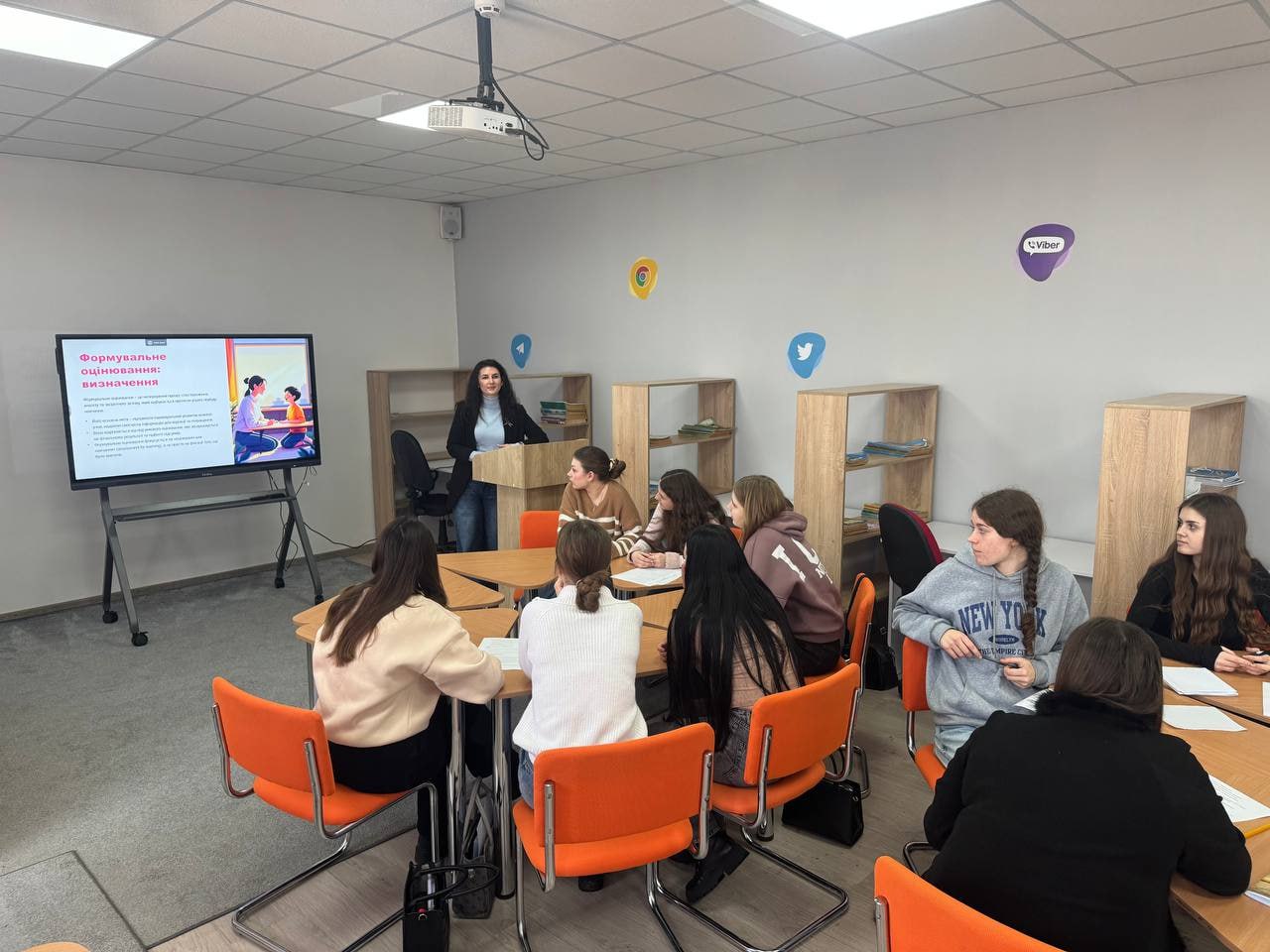 У межах Тижня іноземних мов викладач англійської мови Оксана Лукашко провела воркшоп «Маленькі рухи, великі зміни», присвячений формувальному оцінюванню та метакогнітивним інструментам у початковій школі. Студенти ознайомилися з поняттям метакогніції, виконували інтерактивні вправи, моделювали уроки, аналізували стратегії саморефлексії й обговорювали застосування чек-листів, рубрик та самооцінювання у навчальному процесі.